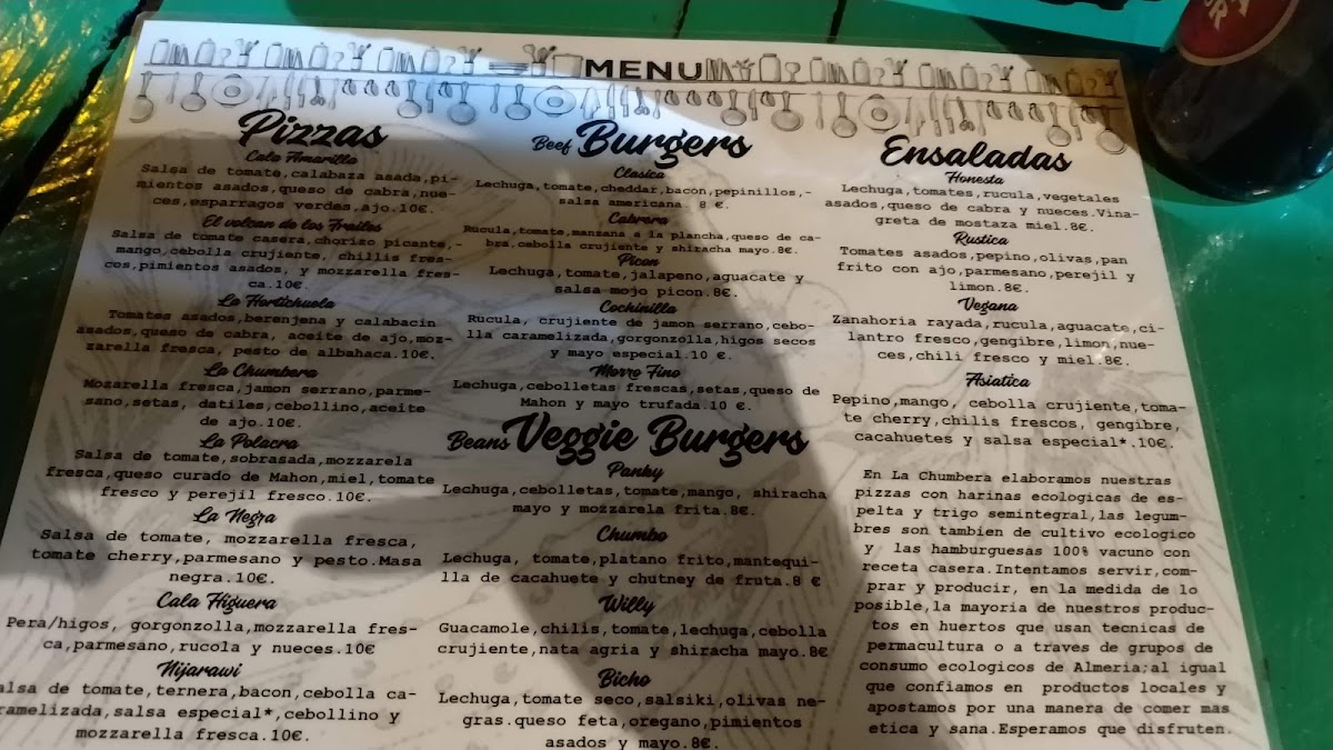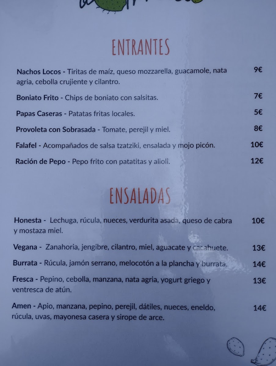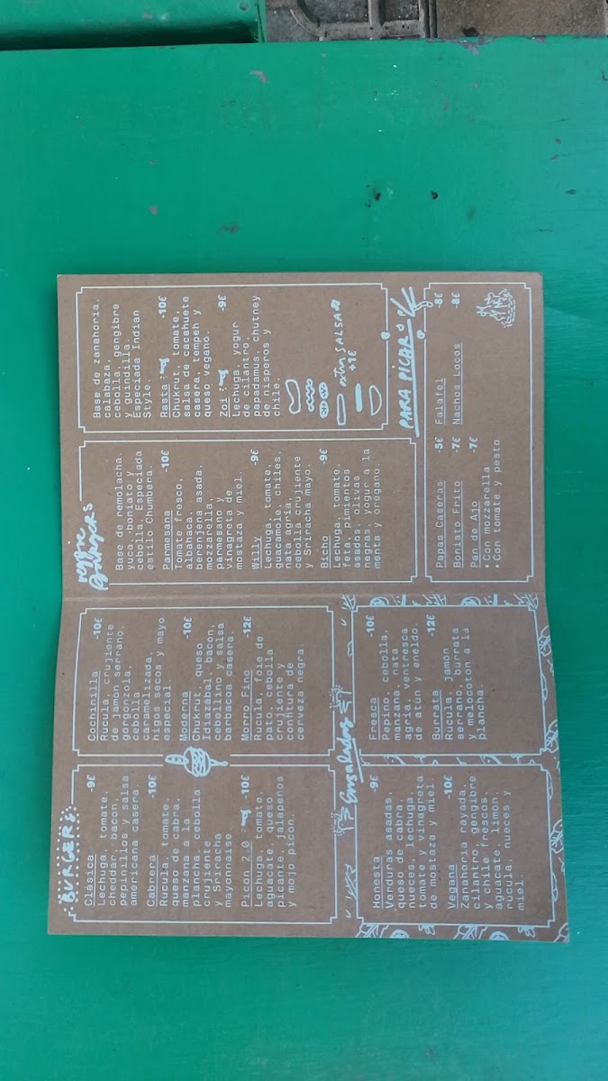 Viewed as a whole, the menu at La Chumbera Honest Food reflects a clear focus on honest, comforting food made to satisfy a wide range of tastes. The burger selection stands out as a central pillar, with the Hamburguesa Clasica offering a straightforward, well-balanced option that highlights quality ingredients without unnecessary extras, while the Hamburguesa Cabrera adds more character and depth for diners looking for something richer and more distinctive. For those seeking a meat-free alternative, the Veggie Burger and Fries shows that vegetarian choices are treated with the same care, pairing a flavorful plant-based burger with a generous serving of fries. Pizza lovers are also well catered for, as the Pizza Home Made reinforces the restaurant’s homemade philosophy, delivering a casual yet satisfying option that fits naturally alongside the burgers. Simpler dishes such as the Burguer appeal to guests who appreciate minimalism and classic fast-casual flavors, while the Ración de Patatas works perfectly as a shared side or a complement to any main, rounding out the menu with familiar comfort. Overall, the menu feels cohesive and approachable, prioritizing recognizable dishes done well, making it easy for diners to mix, match, and enjoy a relaxed, fulfilling meal.